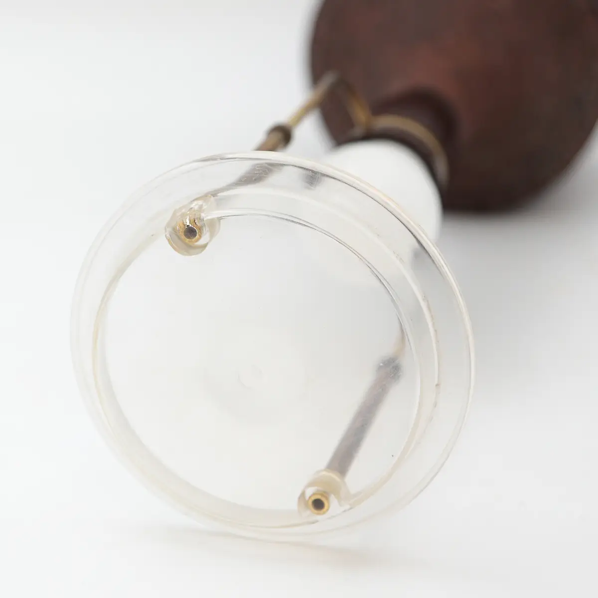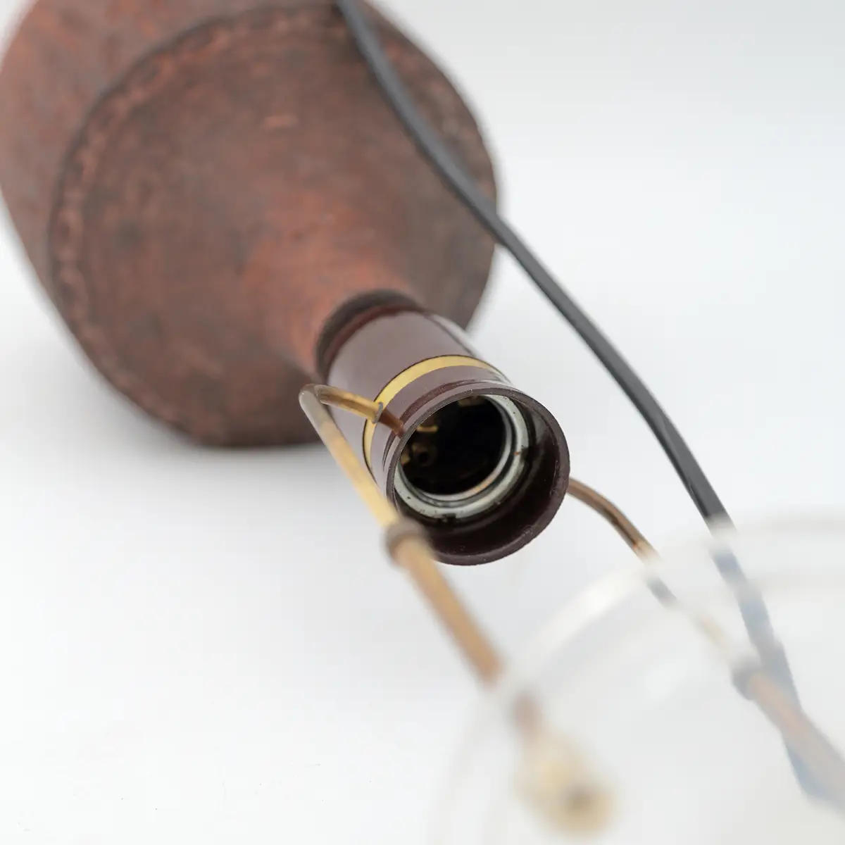 Lampen er gennemgået med ny ledning og stik, og fremstår i flot vintage stand uden afslag – kun almindelige aldersrelaterede spor.