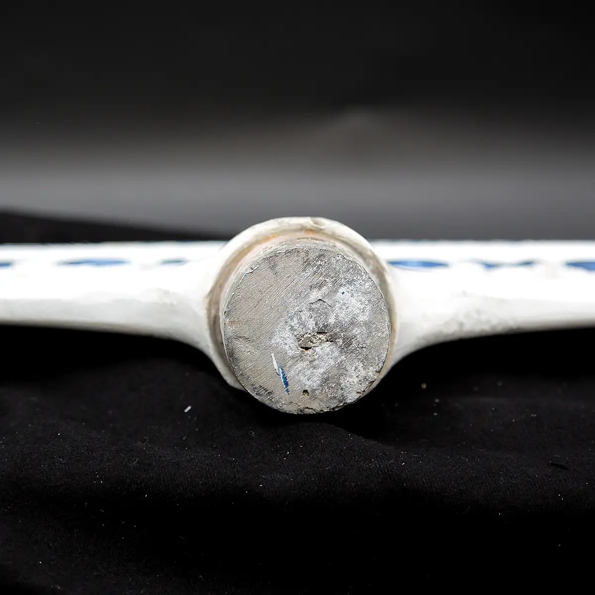 Skiltet er tosidet, hvor hver side har sit eget udtryk. Den ene side fremstår mere slidt end den anden, hvilket giver mulighed for at vælge den side, der passer bedst til display og indretning.